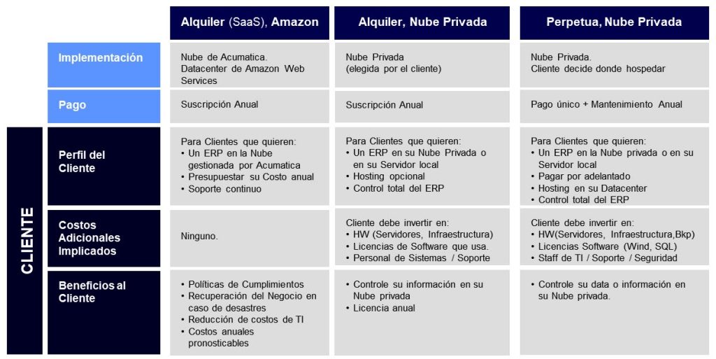 ACUMATICA suites and development or customization tools can be acquired like any traditional software licensing model. We also offer the option to rent it as a Software as a Service (SaaS) subscription.